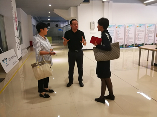 黄大乾校长(右)陪同李映芳校长(中)一行参观U创长廊
