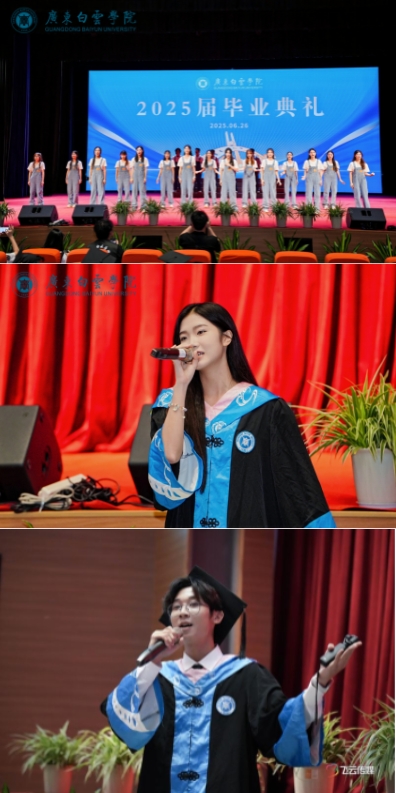 毕业典礼结束后,文艺展演为即将到来的学位授予仪式悄然铺陈开一片温情脉脉的氛围。学生艺术团深情演绎歌曲《亲爱的你啊》 与《世界赠予我的》 ,悠扬的旋律与充满祝福的歌词,道尽同窗情谊与师恩难忘。传媒学院学子一首《璀璨冒险人》,鼓励白云学子在未来前行的路上要记得缓行不回头、逆风不退缩。舞台光影流转,毕业生们轻声跟唱,不少人眼泛泪光,用手机灯光汇成星海,将离别的感伤升华为对未来的期许。