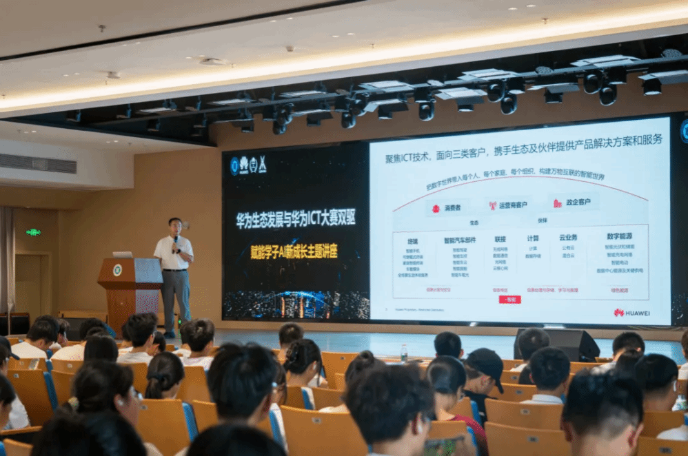 为深化产教融合,响应 AI 时代人才培养号召,10 月 16 日,华为广东产业发展与生态部人才经理印浩洋受邀走进广东白云学院,带来“赋能学子 AI 新成长”主题分享。本次活动在西校区小礼堂举行,吸引华为 ICT 学院近 300 名师生参与,广东白云学院图书馆同步开展华为书籍阅读书展,为师生了解华为技术与文化提供支持。