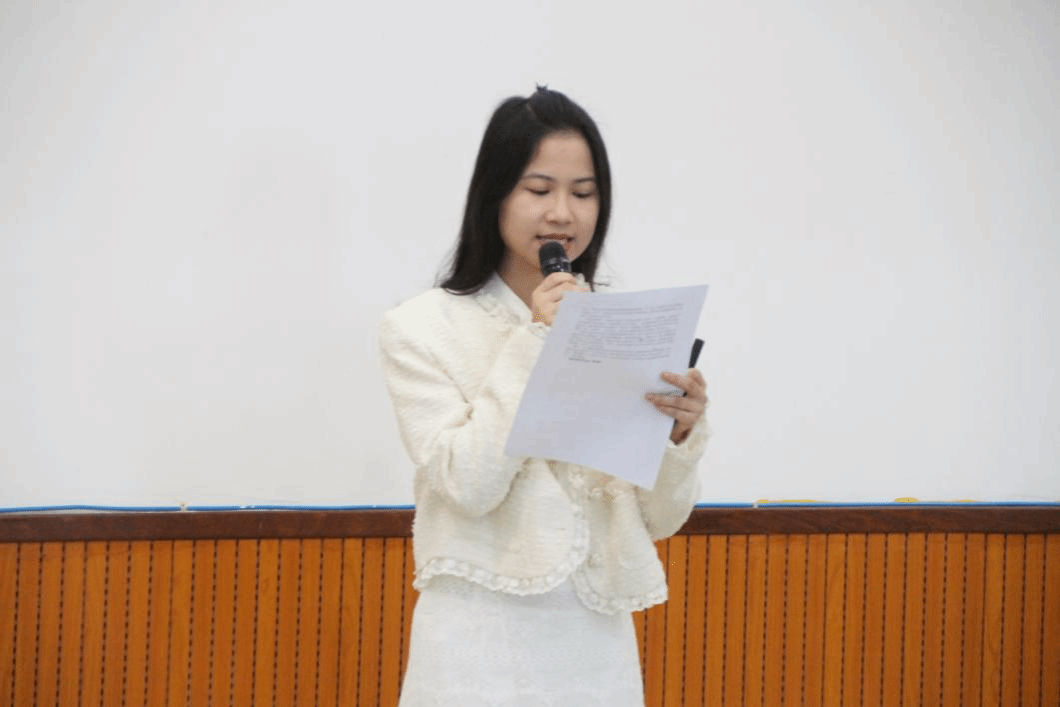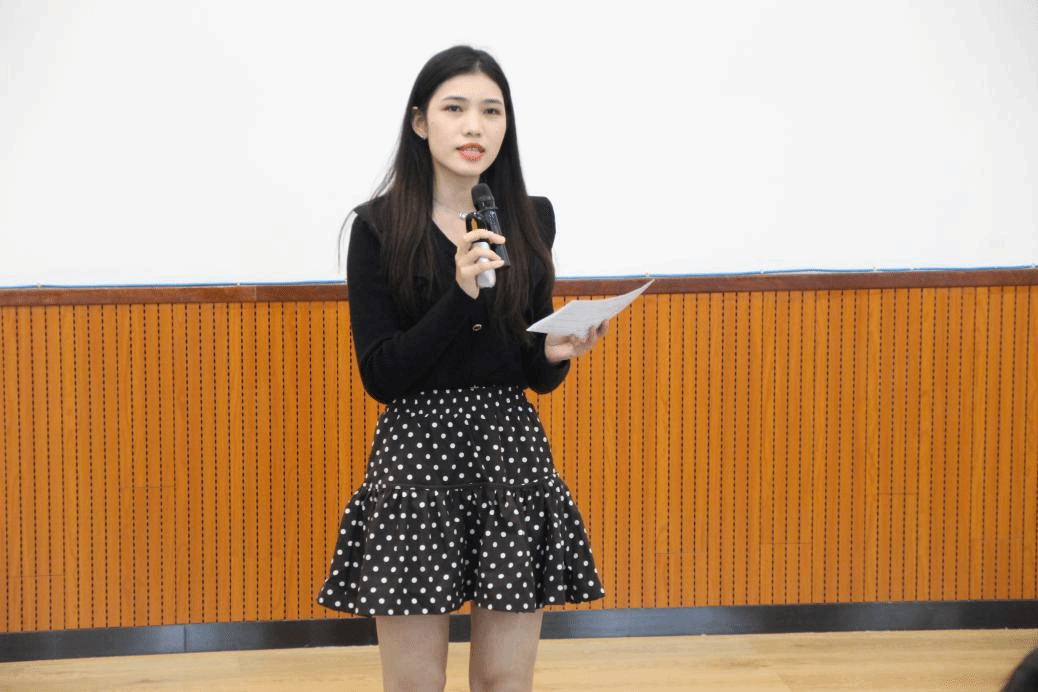 第三位分享的是2023届英语专业校友黄思漫。黄思曼现任国内某知名洗涤机械企业的项目负责人,作为一名身处外贸一线的“实战者”,她深入剖析了外贸的底层逻辑与本质,并指出在数字时代,外贸工作者必须具备数字营销、数据分析等硬实力,还有跨文化交际、抗压能力等软实力。她认为,外贸人不仅是连接中国与世界的桥梁,更是推动国际贸易与经济发展的关键力量。最后,她以“拥抱变化,持续学习”八字箴言赠予学弟学妹,勉励大家勇毅前行。
