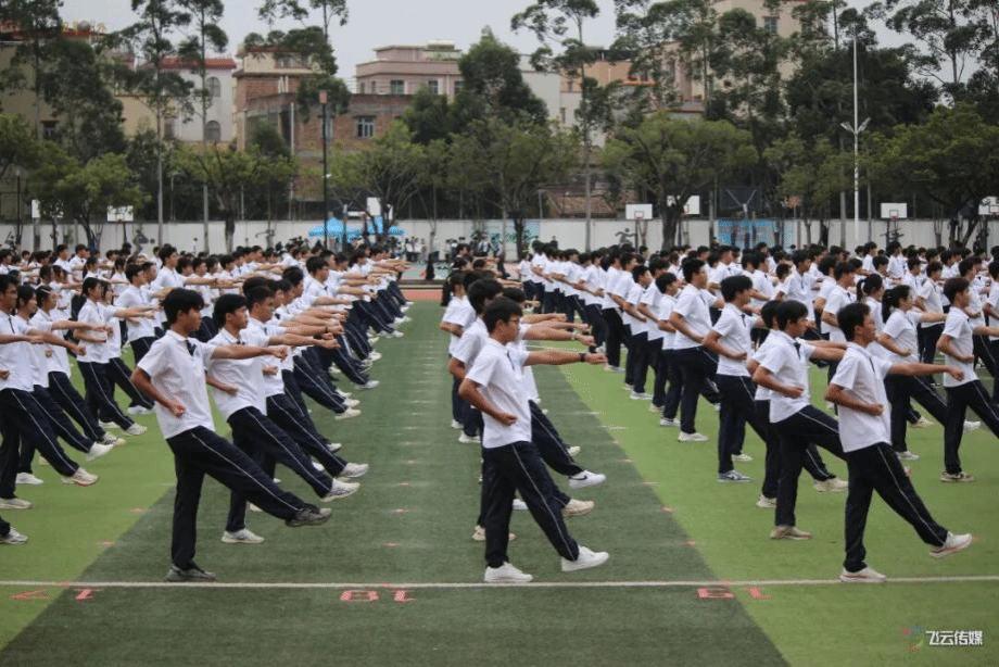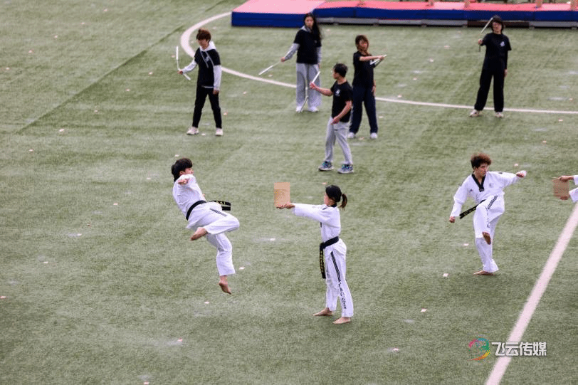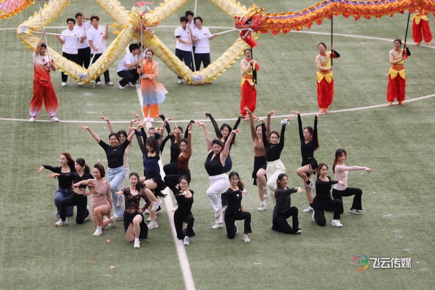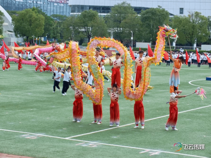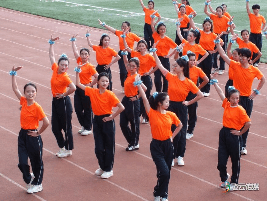 开幕式表演精彩纷呈。“龙狮+传统武术”震撼登场,金龙翻腾,雄狮起舞,是力量与技巧的完美结合。活力四射的体育舞蹈表演点燃了全场,队员们用动感的舞步和灿烂的笑容,诠释了青春的无限魅力。紧随其后的跳绳操同样活力四射。队员们舞动彩绳,动作整齐划一。随着令人眼花缭乱的高难度技巧次第绽放,他们以默契的协作和澎湃的激情,献上了一场力与美结合的视觉盛宴。千人五步拳和第九套广播体操动作整齐、气势恢宏,展现出白云学子力与美的风采,将现场气氛推向高潮。