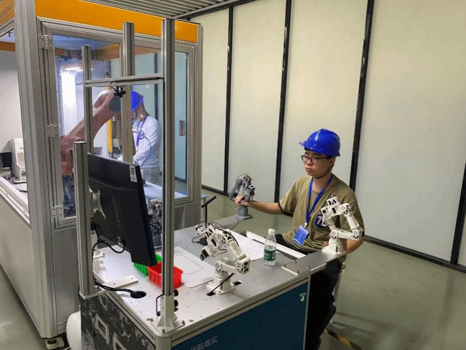 在具体赛况中,陆啸轩、杨灿伟组成的“职技场”团队在工业机器人操作编程、系统集成与精准调试等实战环节稳定发挥;而陈嘉琪、彭儒霖、曾逸飞组成的“创新场”团队则以创新的设计思路与解决实际问题的能力赢得评委认可。