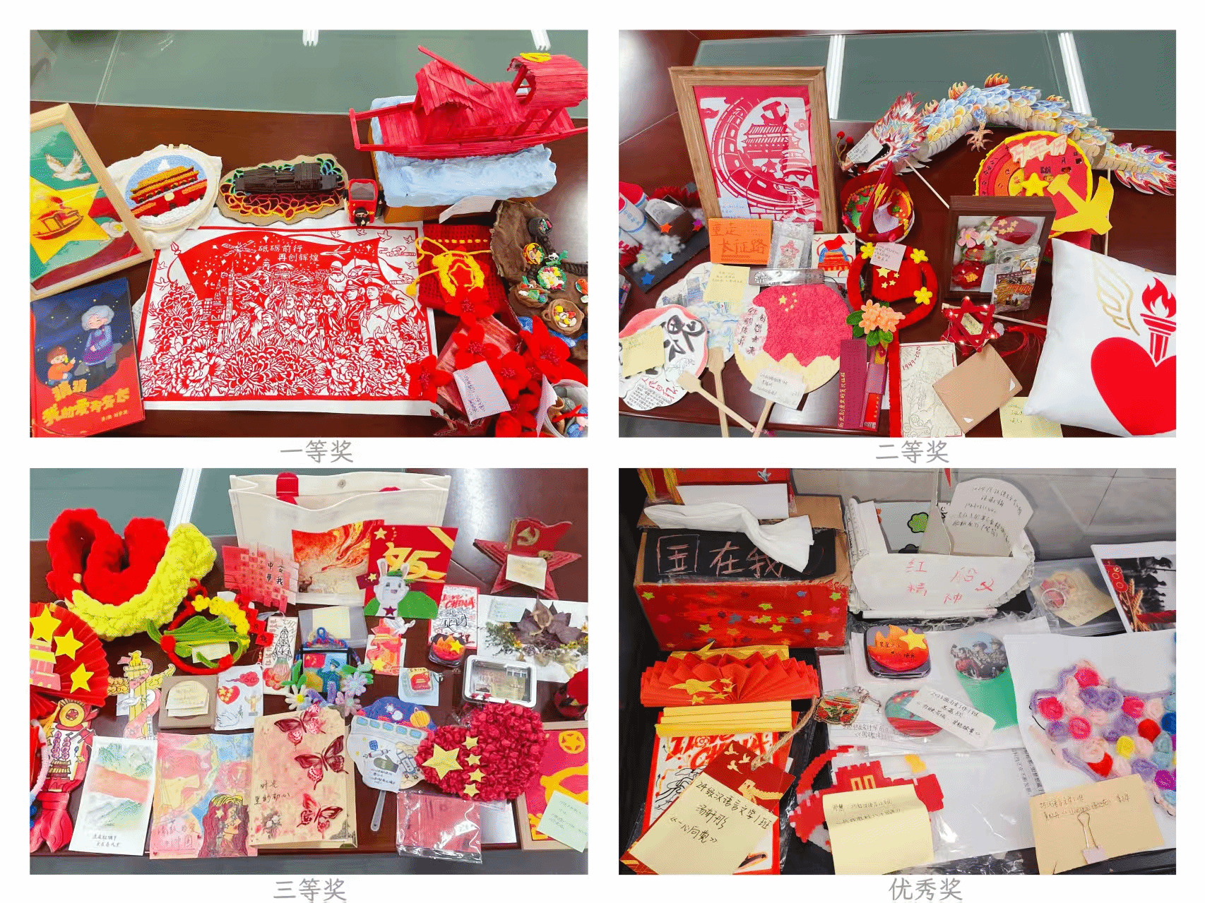 评审过程中,评委们依据大赛主题与标准对作品进行细致评审,不仅高度肯定了同学们的创作理念与实践成果,更对大家从革命先辈崇高精神和党的光辉历程中汲取养分、将红色文化认同与热爱转化为创作灵感的实践路径给予充分认可。一等奖作品中,苏婷婷同学将红色文化与传统非遗元素相融合,以剪纸形式呈现祖国繁荣图景,寓意深远、形式新颖,展现出青年学子对红色精神的当代诠释;陈舒蕊同学匠心独运,将木质南湖红船与衍纸湖面相结合,以丰富色彩致敬“红船精神”,传递初心与使命的永恒光辉;此外,《红星映穗》《红韵揽星扇》等作品,既深刻把握红色精神内核,又巧妙融入时代元素与多元载体,推动红色文化在当代焕发新的生机。从描绘峥嵘岁月的工笔画到凝注红色符号的手工艺品,再到展现革命精神的数字设计,形式多样、内涵丰富的作品,无不彰显着同学们对红色历史的深情回望与崇高敬意。