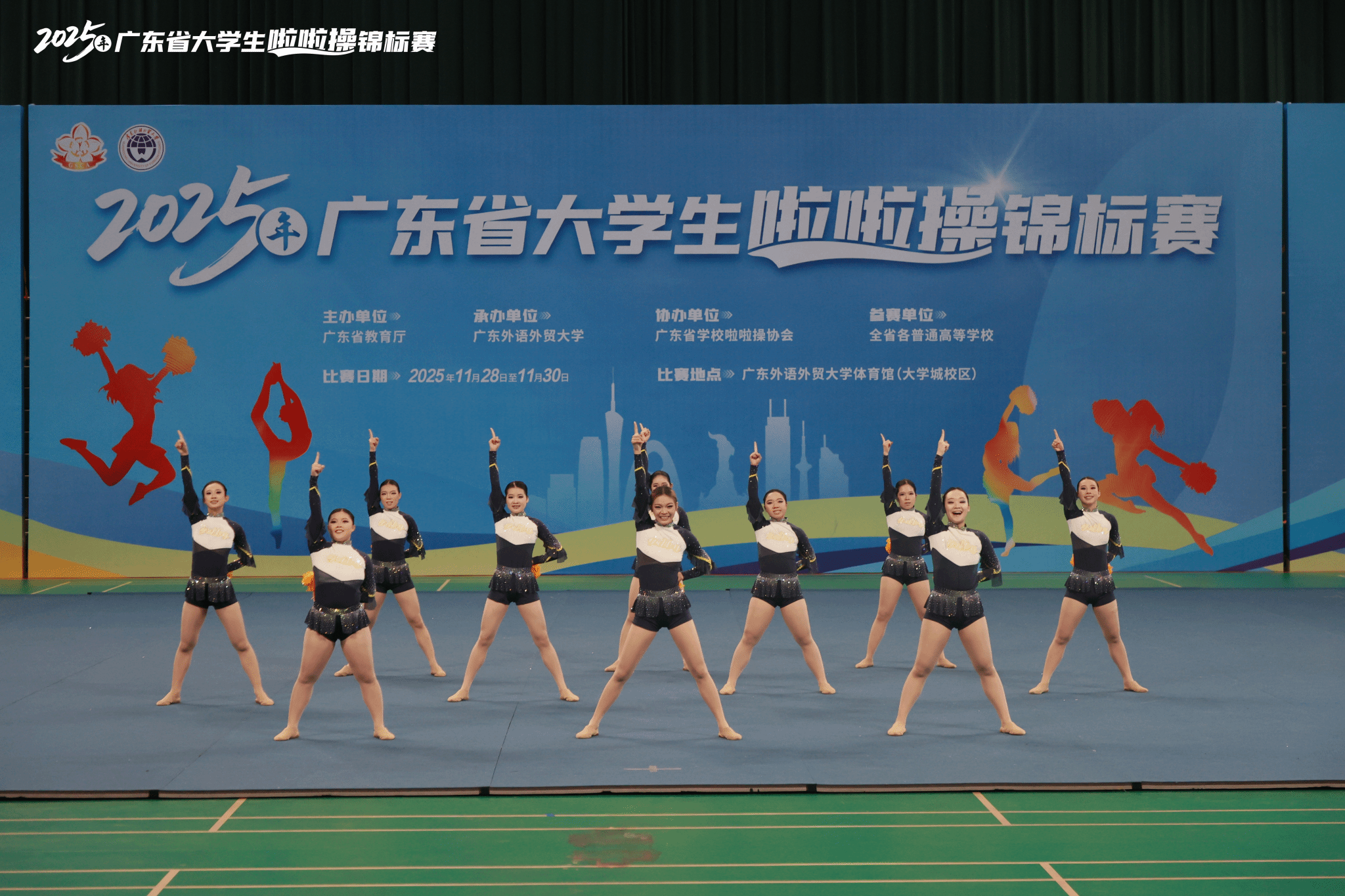 2025年11月28日至30日,广东省大学生啦啦操锦标赛在广东外语外贸大学大学城校区举行。本次比赛由广东省教育厅主办,广东省外语外贸大学承办,广东省学校啦啦操协会协办。比赛设计甲、乙、丙三个组别,共2000多名运动员参赛。经过数月的精心准备和激烈角逐,广东白云学院在赛场之上,以娴熟的技巧惊艳亮相,用鲜活的艺术表现力打动全场,更以高度的团队凝聚力诠释了协作之美。为全场观众呈现了一场异彩纷呈的视觉盛宴,生动诠释了新时代啦啦操运动的蓬勃朝气。