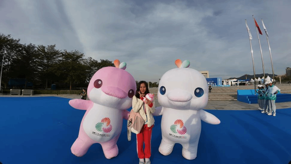杨晓婷完赛后与吉祥物合影