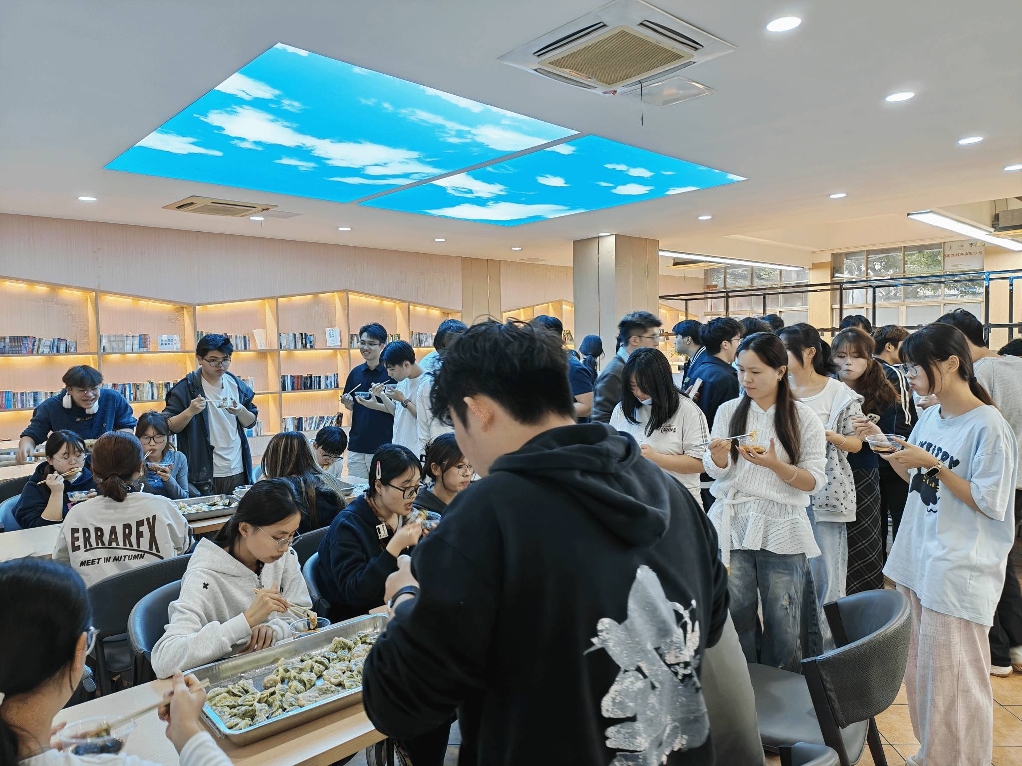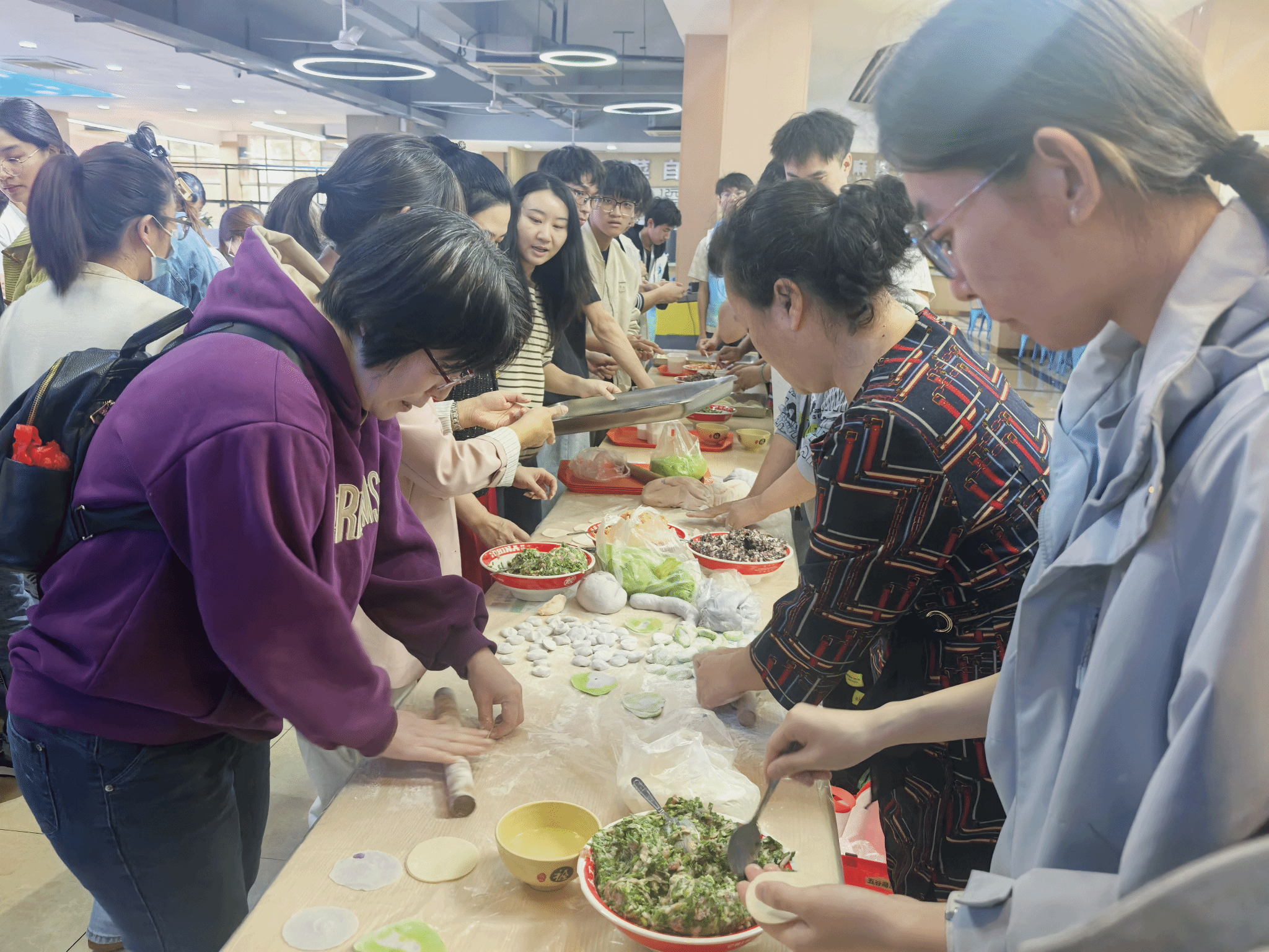 经过一个多小时的忙碌,一只只形态各异、饱满圆润、色彩诱人的饺子新鲜出炉。食堂师傅们迅速将饺子下锅,不久后,热气腾腾的饺子便被端上餐桌。与此同时,西校区一品堂饭堂还贴心为师生们准备了香甜软糯的汤圆,与热气腾腾的饺子相映成趣。师生们围坐一堂,共同品尝亲手包制的饺子,大家一边吃着热气腾腾的食物,一边畅谈生活与学习中的趣事,欢声笑语此起彼伏。