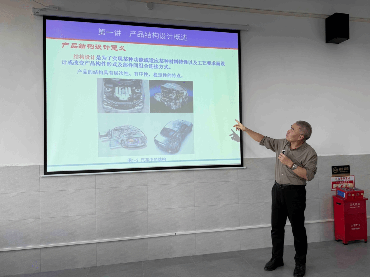 近日,艺术设计学院产品设计系在《产品结构与拆解》课程中开展校企协同教学,特邀广东呈达电梯有限公司技术总监钟飞走进课堂,为产品设计系大二学生进行授课,将行业经验融入课堂理论之中。