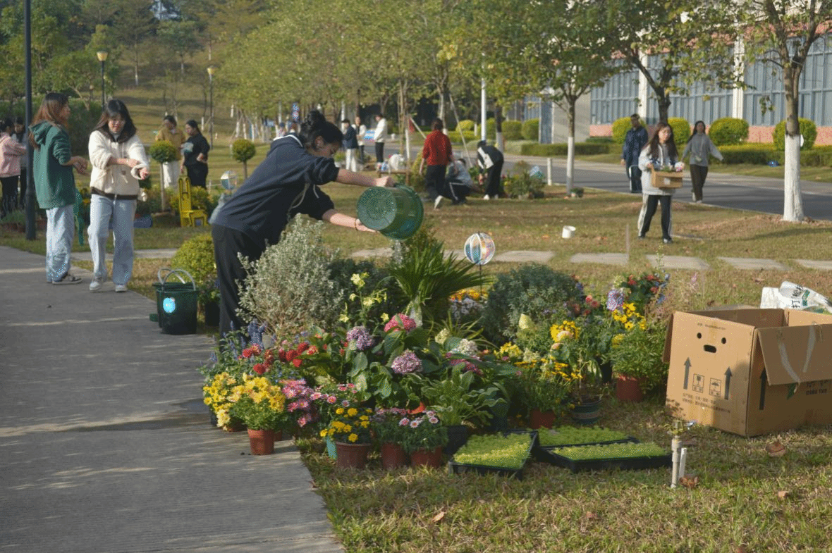 在课程开始前一周,面对植物采购突发问题,授课教师常云凤及时联动花卉基地与采购部门优化供应链,保障教学进度。现场施工阶段,联合总务处、环境科等多部门协同攻坚,创新采用“引导者+协调者”双角色助力学生实现从图纸到实景的跨越,成功破解“施工型课程”跨部门协作难题,为风景园林专业“教学研用”探索出可行性路径。这一实践不仅保障了教学质量,更验证了协同育人与项目驱动模式的有效性,成为后续课程建设的范本。