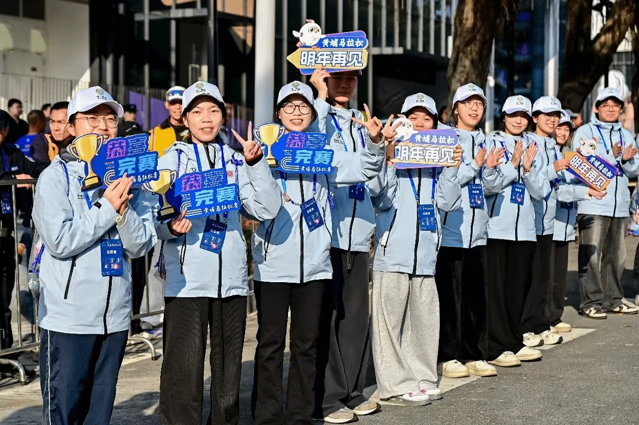 作为中国田径协会认证的A1类赛事,黄埔马拉松历经七载沉淀,从“铜牌赛事”一路成长为“世界田联精英标牌赛事”,2025年报名人数更是突破7万人,彰显着强大的品牌号召力。2025年赛事以“到黄埔去,跑向幸福”为主题,设马拉松、半程马拉松两大项目,吸引2万名跑者在黄埔的创新长廊与山水画卷中畅意奔跑。广东白云学院志愿者团队的加入,为这场盛会注入了不可或缺的青春力量——这也是学校连续第三年组织志愿者助力“黄马”,更是“奉献、友爱、互助、进步”志愿精神的生动实践。