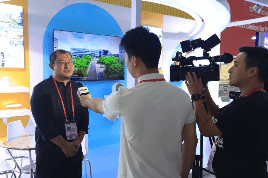 成果主创教师方建松在广交会现场接受央视采访