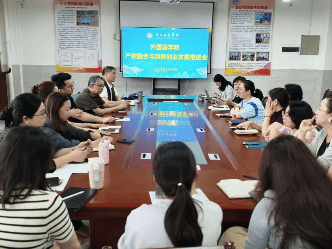为深入贯彻落实学校关于深化产教融合、推进创新创业工作的决策部署,全面提升人才培养质量,3月24日,外国语学院在励学楼705会议室召开产教融合与创新创业发展推进会。院长廖开洪主持会议,副院长沈纯琼、龚长华,各系主任、职业导师及相关课程教师参加会议。
