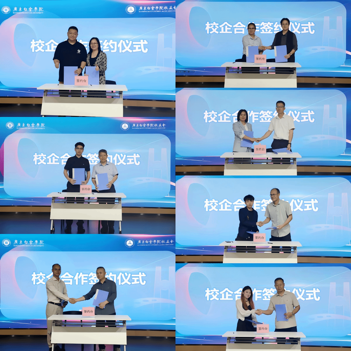 在“筑同心·促共赢”篇章中,学校举行校企合作签约与授牌仪式。各二级学院代表与校友企业代表共同签署校企合作协议,并为一批优秀校友企业授予“校外实践教学基地”和“招生咨询与就业服务驿站”牌匾,为学校学子搭建起理论联系实际的实践平台,助力人才培养质量提升。来自广州、惠州、佛山、东莞、梅州、中山、河源、清远等地的校友代表依次上台接牌,标志着校友资源在推动学生实习就业、招生宣传、实践育人等方面迈出坚实一步。通过此次签约授牌,学校将进一步深化校企协同育人模式,推动产教融合走深走实,携手培养更多契合行业发展需求的高素质应用型人才。